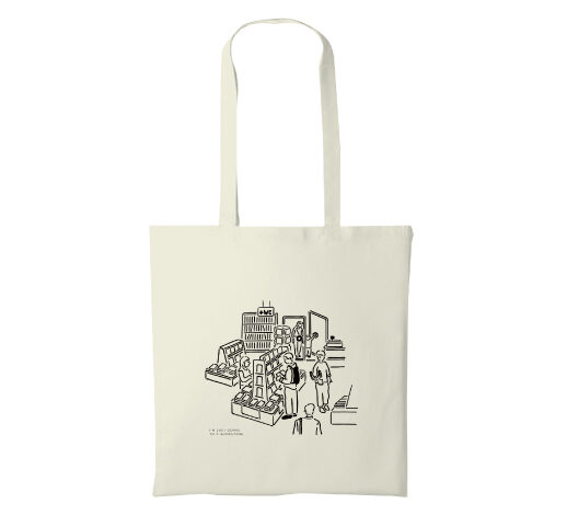 『ちょっと本屋に行ってくる。NEW EDITION』(著・藤田雅史/issuance刊)の表紙イラストをアイテム化!これを着て本屋に行くのも吉。財布とスマホは忘れずに。